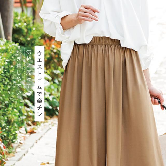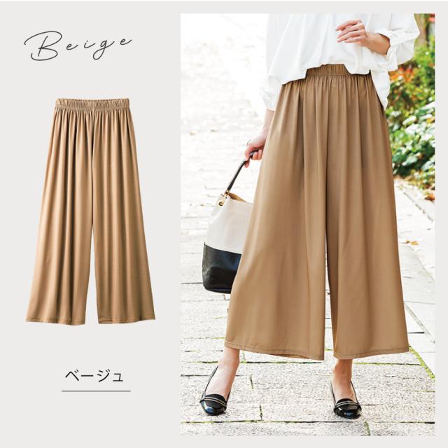 夏 涼しい ワイドパンツ,ガウチョパンツ きれいめ,ワイドパンツ ウエストゴム,ワイドパンツ,ガウチョパンツ,ワイド,ガウチョ,さらさら,サラサラ,サラっと,さらっとしている,さらり,サラリ,爽やか,さわやか,べたつかない,ベタつかない,ブラック,黒,ベージュ,パンツ,ボトムス,ボトム,ウエストゴム,総ゴム,ウエスト,ゴム,動きやすい,楽ちん,春,夏,春夏,夏用,薄手,薄い,大人,レディース,女性,お年寄り,高齢者,シニア,50代,60代,70代,おしゃれ,お洒落,オシャレ,かわいい,可愛い,シンプル,M,L,LL,3L,大きいサイズ,大きめ,ゆったり,カジュアル,きれいめ,フェミニン,上品,エレガント,高見え,体型カバー,コーディネート,着回し,細見え,着痩せ,着心地,