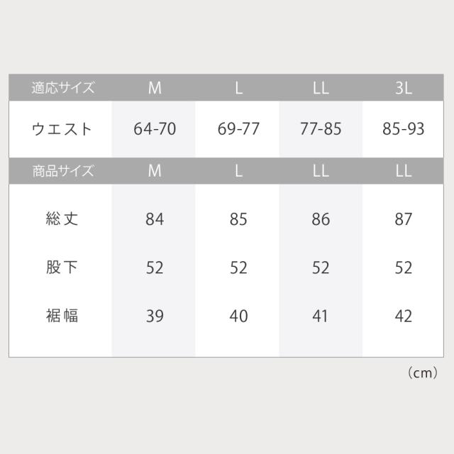 ■サイズ:M/ウエスト64-70、総丈84、股下52、裾幅39、L/ウエスト69-77、総丈85、股下52、裾幅40、LL/ウエスト77-85、総丈86、股下52、裾幅41、3L/ウエスト85-93、総丈87、股下52、裾幅42cm。モデル/身長162cm、Mサイズ着用。