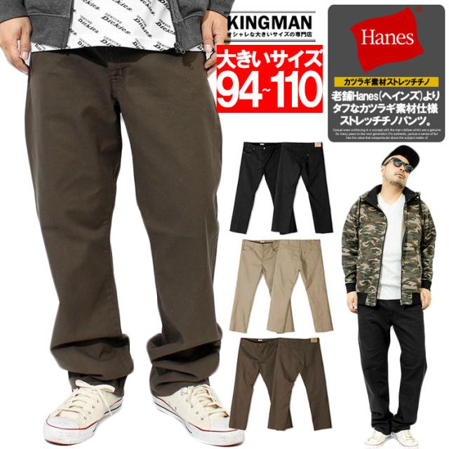 【送料無料】 大きいサイズ カツラギ ストレッチ チノパンツ チノパン ビックサイズ メンズ 男性 USサイズ パンツ 人気 アメカジ チノ ボトムス 学生 ワイドパンツ シンプル バギーパンツ Hanes ワークマン プラス