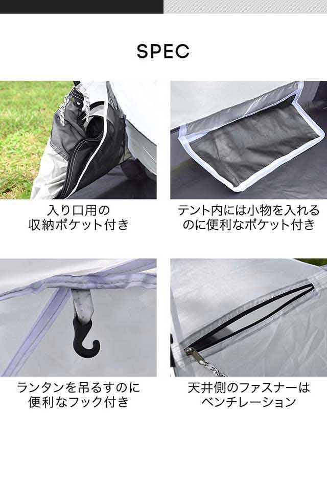 | 特記事項: ・テント本体×1 ・テントポール×2 ・専用収納バッグ×1 ・取扱説明書(日本語) |