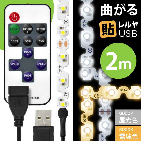 | LEDテープライト [曲がる] 貼レルヤ USB 2m(昼光色/電球色) |