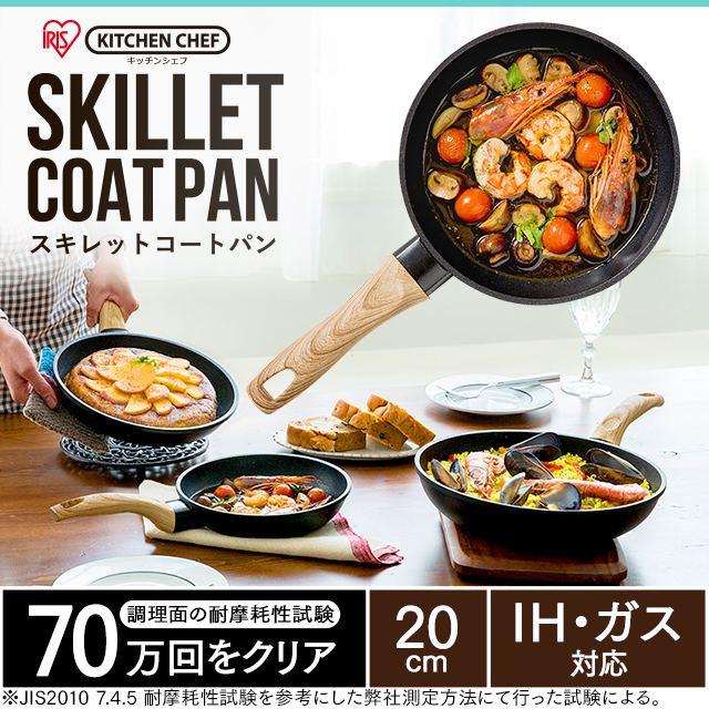 フライパン 20cm ih対応 アイリスオーヤマ * SKL-20IH ih ガス火 お手入れ 簡単 コーティング 使いやすい 片手鍋 おしゃれ アルミ製 丈夫 長持ち ハンドル 取っ手 木 木製 こびりつきにくい 収納 底厚 軽量 スキレット風 アウトドア キャンプ