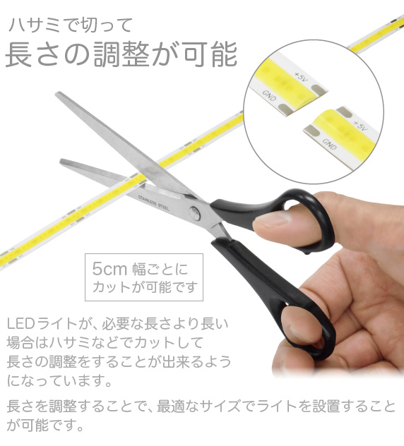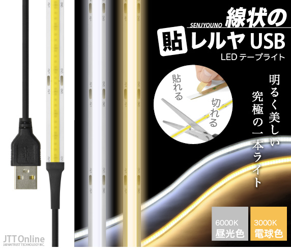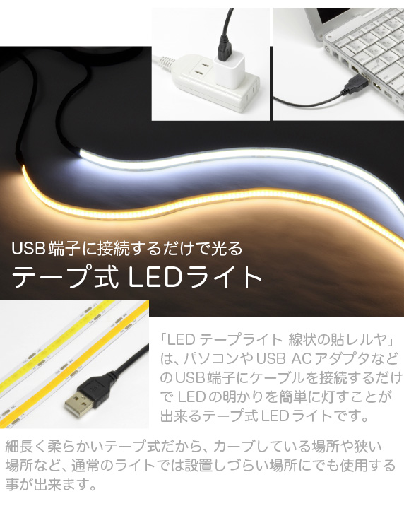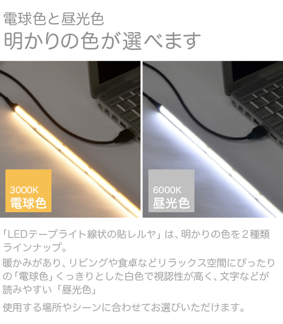 LED USB 照明 テープライト 線状の貼レルヤ(昼光色/電球色 1m)明かりムラも無く美しい 一本線の光 ハサミで切って長さの調節可能
