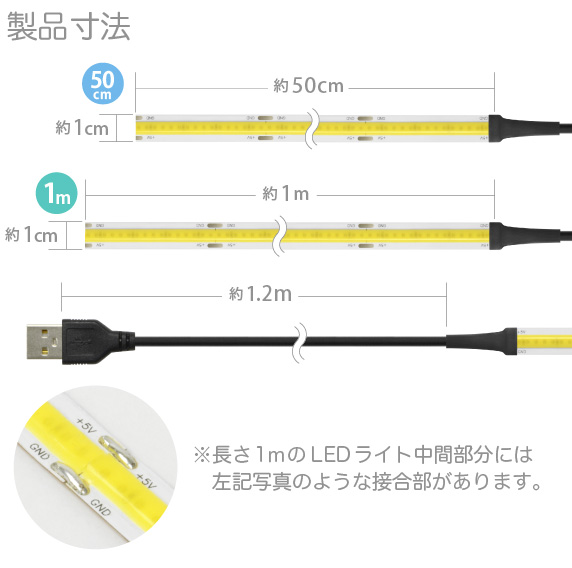 | ライト部:約 長さ100cm×幅1cm USBケーブル長:約 120cm |