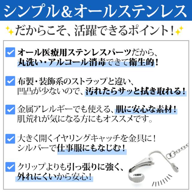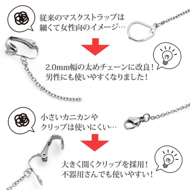 [クリップタイプ3] 金アレ対応 NEW2.0mm幅 マスクストラップ ネックストラップ マスクチェーン サージカルステンレス製 316L