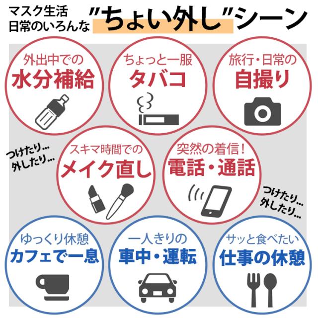 - 私は愛煙家で顎マスクを良くしているのですが、こちらを使用すると、タバコ臭さが軽減します。もちろん、また装着する手間はかかります。 不繊維のマスクはテーブルに置いてと衛生面が気になるのと置き忘れたりして...