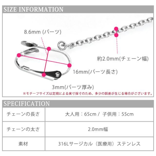 □チェーンの長さ:通常サイズ65cm、子供サイズ55cm