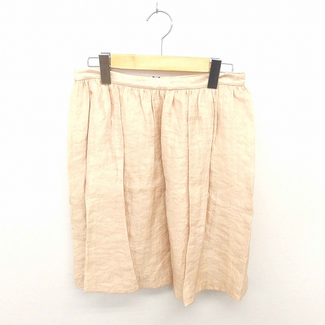 【中古】未使用品 インデックス INDEX タグ付き スカート フレア ミニ バックジップ 薄手 無地 S 薄茶 ベージュ