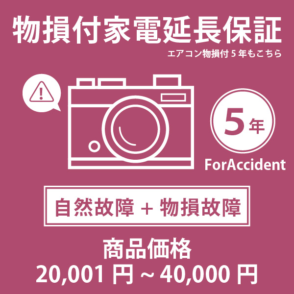家電・エアコン物損付き5年延長保証 自然故障+物損故障 税込商品価格 20,001〜40,000円 迄の商品が対象 対象商品と同時に購入下さい