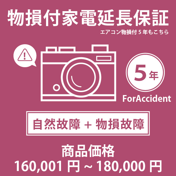 家電・エアコン物損付き5年延長保証 自然故障+物損故障 税込商品価格 160,001〜180,000円 迄の商品が対象 対象商品と同時に購入下さい