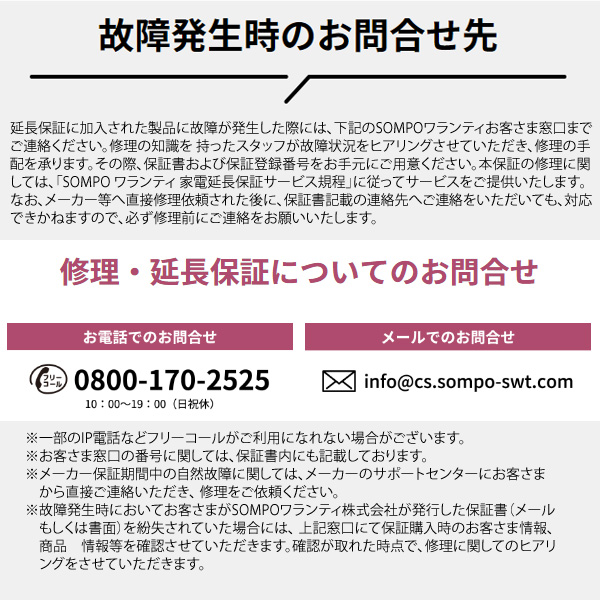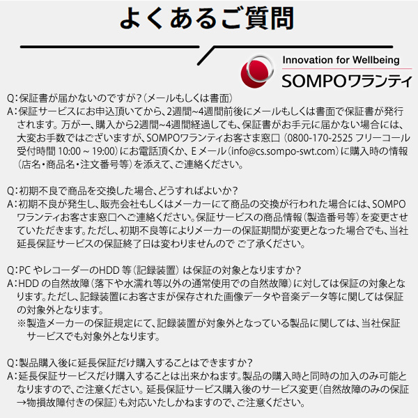 SOMPOワランティ延長保証のご案内