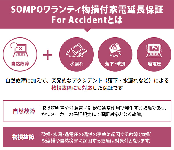 ※詳しくは、「SOMPO ワランティ 家電延長保証サービス規程(フォーアクシデント)」をご確認ください。