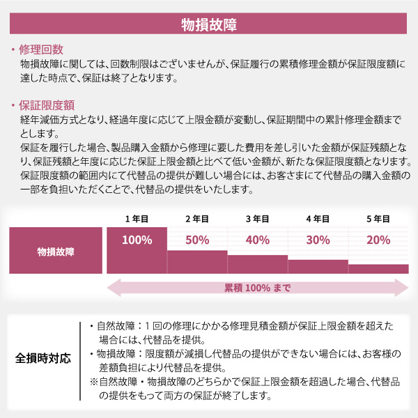 (物損の場合は経過年数による保証額の減額あり。)