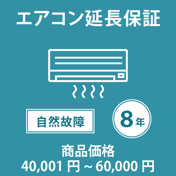 エアコン8年延長保証 自然故障保証タイプ 税込商品価格 40,001〜60,000円 までの商品が対象です 対象の商品と同時購入が必要です