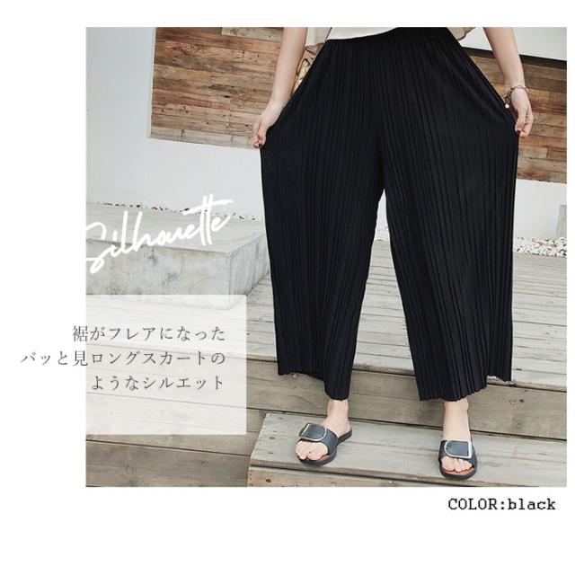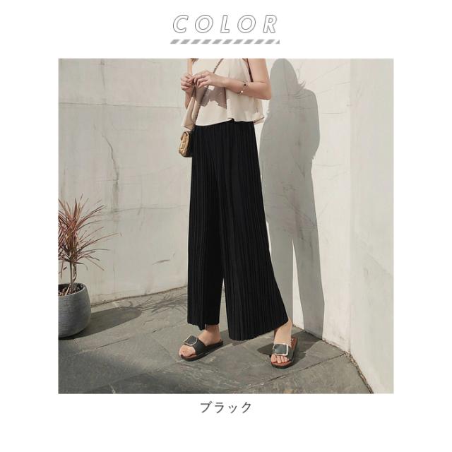 ワイドパンツ レディース きれいめ 通販 春夏 おしゃれ ファッション シンプル 婦人服 ズボン オフィス プリーツ ゆったり シフォン Mサイズ Lサイズ ブラック カジュアル パンツ