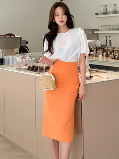 タイトスカート ひざ丈 ゆったり スリット 春夏 無地 黒 白 ベージュ グリーン 大人女子 10代 20代 30代 お出かけ デート OL 可愛い 上品 シンプル きれいめ 清楚 韓国 トレンド