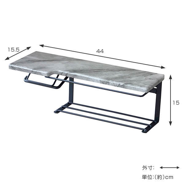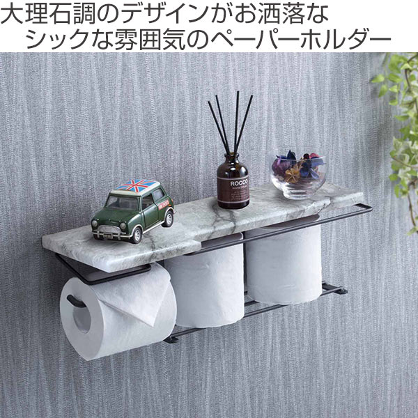 トイレットペーパーホルダー 棚付 大理石調 ストックタイプ 幅44cm ( ペーパーホルダー トイレットペーパー 2ストック 棚 棚付き 小物置き トイレ ペーパー収納 ホルダー ペーパー押さえ おしゃれ )