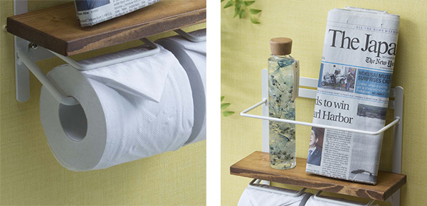 | 簡単取り付け トイレットペーパーは簡単に取り付けることができます。取り付け部の素材はスチール製で丈夫なので、安心してお使いいただけます。 | 便利なハイタイプ ハイタイプなので高さのある小物なども置くことが出来ます。 |