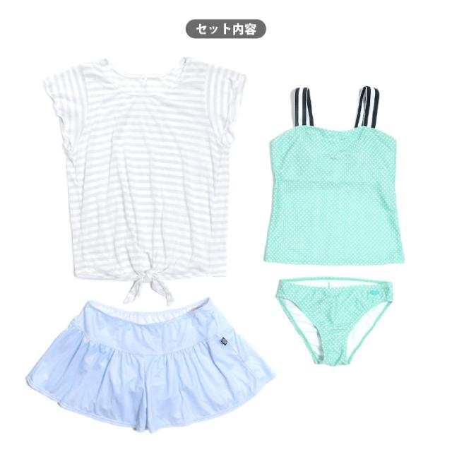 カバーアップ、フレアショートパンツ、タンキニ水着上下のセットアップです。