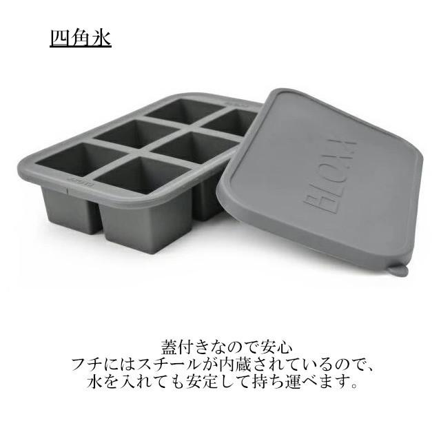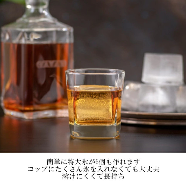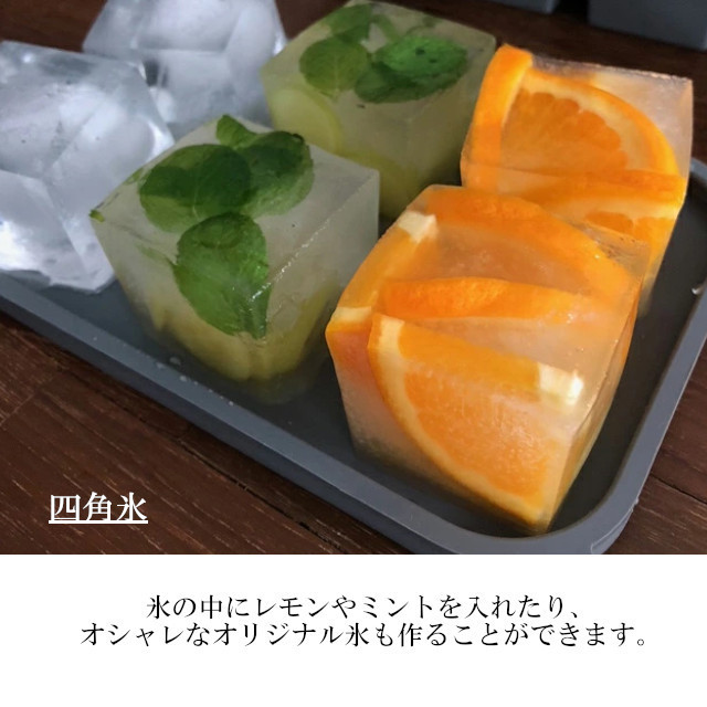 特大サイズの四角い氷が6個できるトレイです。蓋つきなので臭い移りも心配なしでスタッキングも可能です。氷の中にレモンを入れたりお洒落なオリジナル氷も作ることができます。シリコン製で取り出しも簡単!