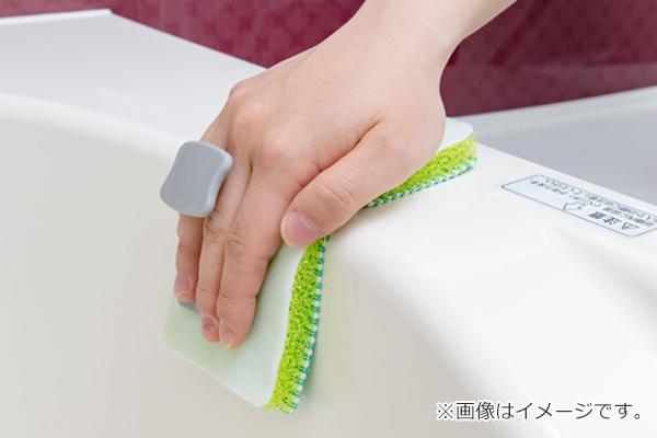 ブラシ繊維が湯アカや汚れをかき取り、吸着繊維が浮いた汚れを拭き取ります。清掃面を傷つけにくいブラシ繊維を採用しています。