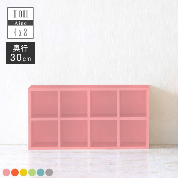 本棚 完成品 ブックラック ディスプレイシェルフ オープンラック 北欧 本箱 雑誌 漫画 絵本 子供部屋 保育園 幼稚園 H-001 4×2/D30 ☆