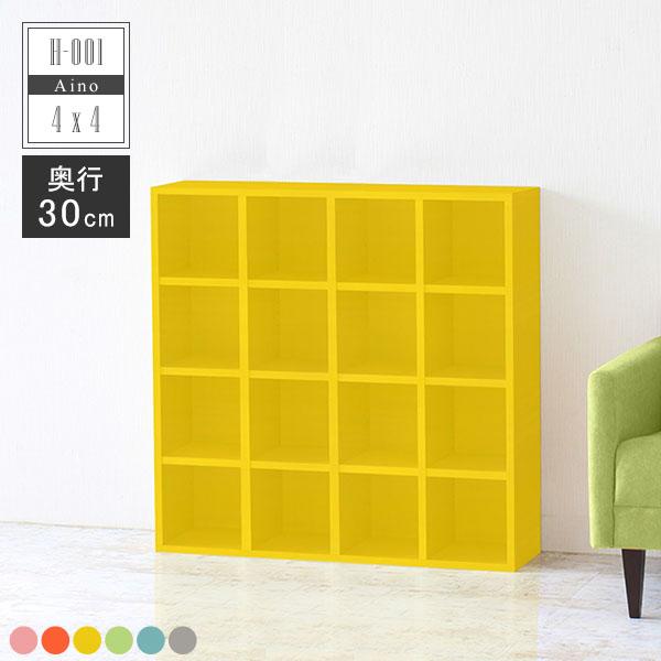本棚 完成品 ブックラック ディスプレイシェルフ オープンラック 北欧 本箱 雑誌 漫画 絵本 子供部屋 保育園 幼稚園 H-001 4×4/D30 ☆