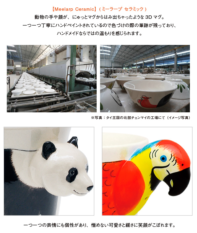 ティータイムを一緒に過ごしてくれる可愛い相棒のようなマグ。家族ひとりひとりの専用マグにしてみんなで使えばテーブルが動物園になります。
