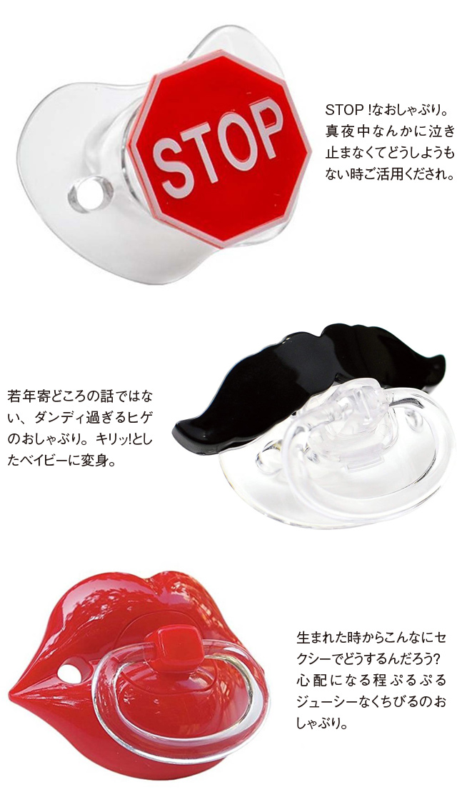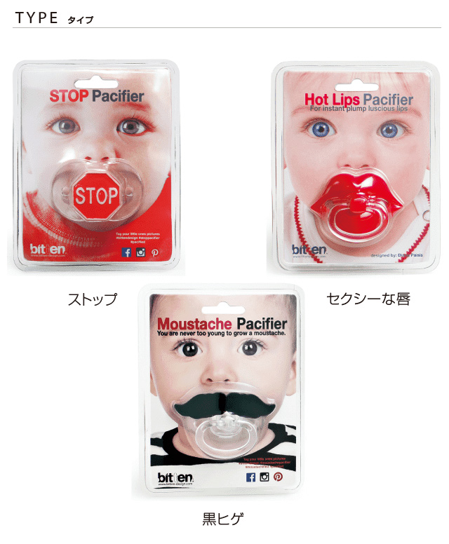 【BITTEN】おしゃぶり 561703600/561700600/561700500【STOP 黒ひげ セクシーな唇 赤ちゃん 泣き止む 夜鳴き 可愛い ベビー パシファイヤー スペースジョイ】