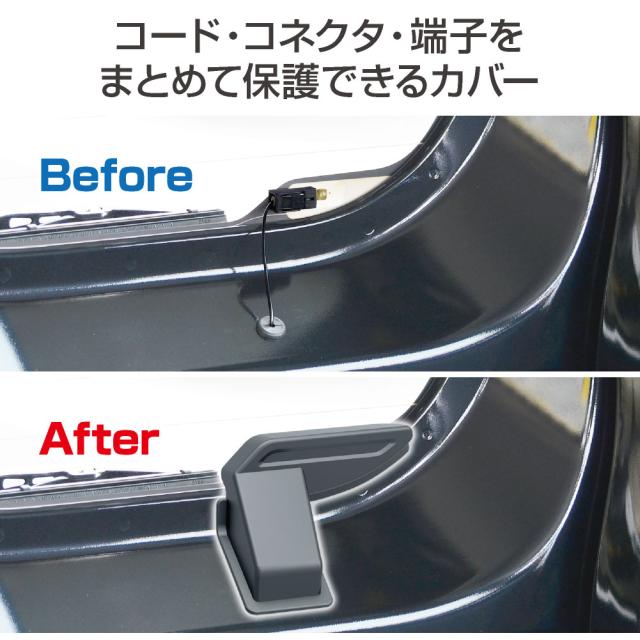 ●貼付けるだけで、リアデフォッガー(曇り止め)のむき出しになっているコード・コネクタ・端子をまとめて保護できるカバーです。