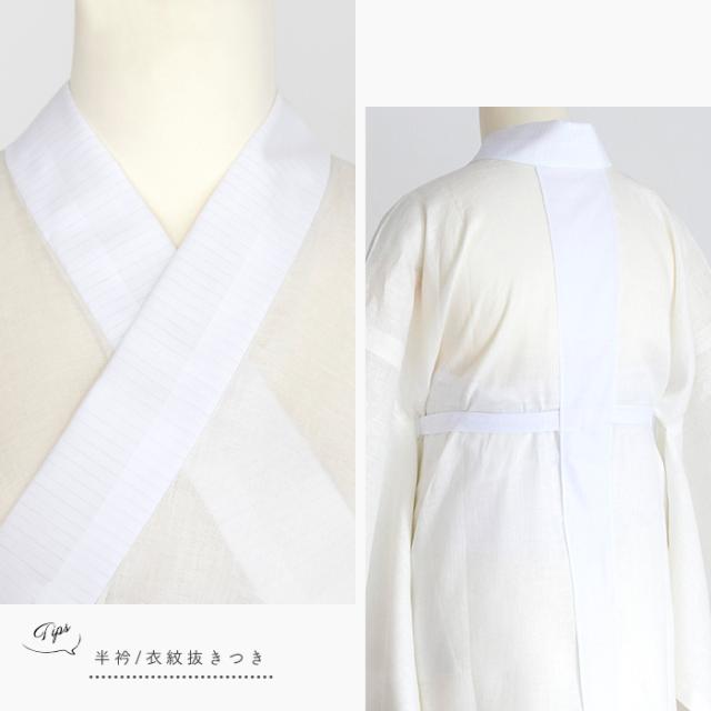 夏を快適に。 肌に直接触れるものだからこそ、着心地のよさを考えた本麻二部式襦袢です。 初心者の方にもおすすめな二部式(セパレート)タイプ。 柔らかな麻生地を使用しており、さらりとした肌触りに 涼しげな透け感で汗蒸れを軽減します。 ※半衿付き。衣紋抜き付き。別紐付きです。