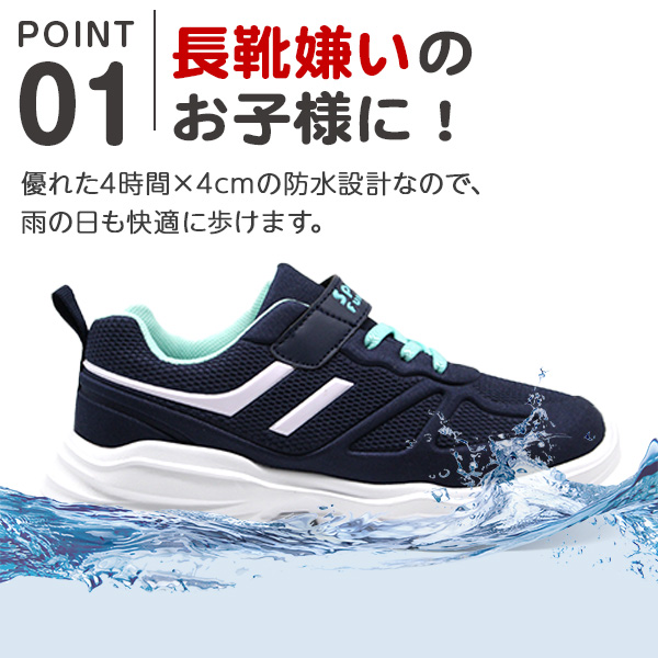 防水 スニーカー キッズ ジュニア 子供 男の子 女の子 靴 レインシューズ 黒 ブラック ネイビー ピンク 雨 安心 軽量 軽い 疲れにくい ベルトテープ かっこいい かわいい シンプル 小学生 運動靴 梅雨 厚底 レディース SPPED FUNCTION FKR-1363 FKR-1364 ギフト