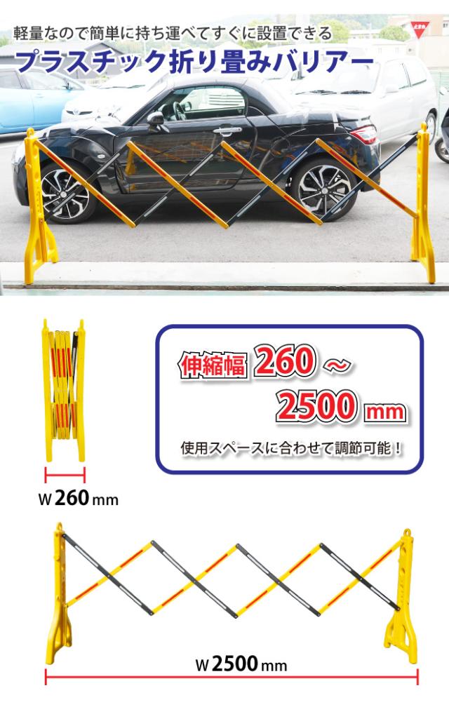 バリケード 工事現場 屋外 幅2.5m バリケードフェンス 伸縮 プラスチック折り畳みバリアー 門扉 軽量 バリア ガード KIKAIYA