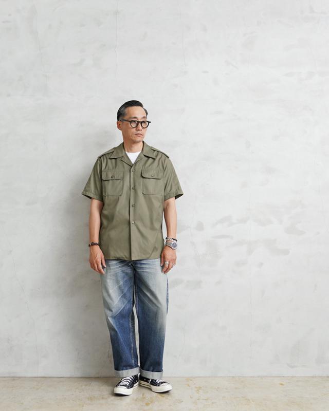 | 商品説明 | 実物 新品 デッドストック ギリシャ軍 ショートスリーブ チノシャツ オリーブのご紹介です。 ギリシャ軍から1980年代を中心とした実物放出のチノシャツが入荷しました! ハリのあるコットンツイル生地でライトな質感のベーシックなミリタリーシャツです。 シルケット加工(マーセライズ加工)を施したコットン素材が採用されており、耐久性と耐摩耗性、吸湿性が向上し、絹のような品のある光沢感が得られ、ソフトな手触りで高級感があります。使用していくことで風合いの良い経年変化も楽しめる品質の高い素材です。 オープンカラーのミリタリーシャツで、フロントに2箇所のボタン留めのフラップポケットと肩にはエポレットが備わっており、袖口は折り返されたカフスデザイン、裾はサイドからラウンドしたデザインでバランスの良いディテールです。ベーシックなアイテムだからこそ現代でも多くの場面で使える汎用性の高いデザインです。 アースカラーが使用されることで自然に馴染みやすく、カモフラージュ柄が採用されていく流れを汲んでいるチノシャツです。高品質な素材が使用されたチノシャツは持ってて損のないアイテムだと思います! | ||||||||||||||||||||||||||||||||||||||||||||||||||