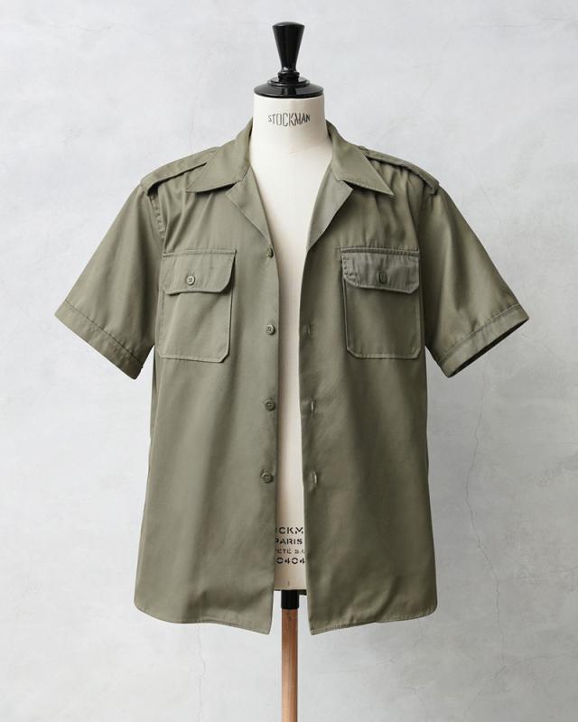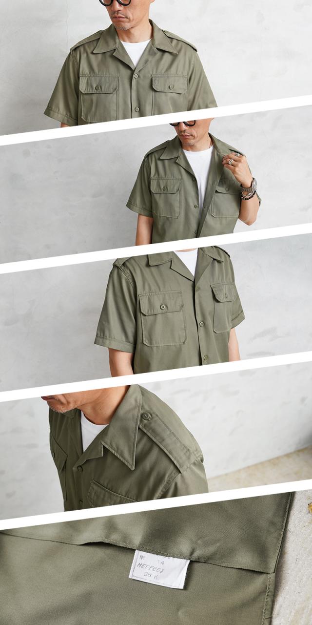 実物 新品 デッドストック ギリシャ軍 ショートスリーブ チノシャツ オリーブ【Cx】【I】|メンズ 半袖 開襟シャツ サファリシャツ カーキ ミリタリー 大きいサイズ 古着 ファッション おしゃれ