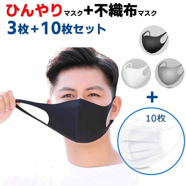 13枚お得な ひんやり & 不織布マスク セット ひんやり マスク 夏 洗える レディース メンズ ユニセックス 男女兼用 抗菌 防臭 花粉 ウイルス UVカット 吸湿速乾 接触冷感 洗える 布マスク 夏向け 薄手 大人