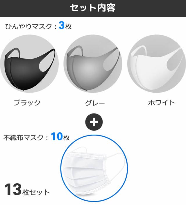 ひんやりマスク:3枚入(ブラック、グレー、ホワイトから選べる)不織布マスク:10枚入(ホワイト)