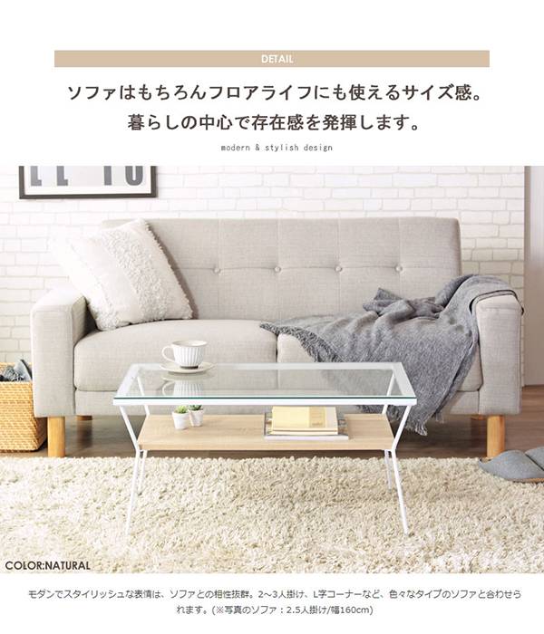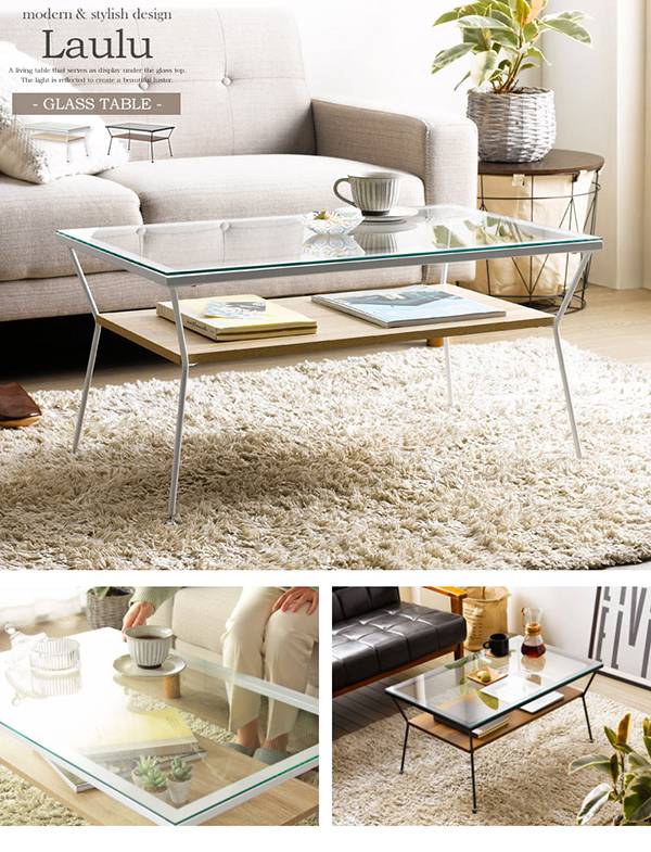 ローテーブル ガラステーブル 棚付き 幅80 リビングテーブル 白 テーブル ガラス カフェ風 Laulu ラウル ガラステーブル