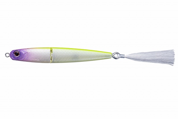 アイ・ウェーバー74が2フック(#10)に対し、60SSSは針絡みや比重設 定を最大限考慮しました。開発では、2フック仕様(#12×2)や様々な位置 の1フック仕様の比較テストを実施しました。結果、リアボディ1フック仕 様だと風に流されやすく、狙ったコースを通しにくいことからフロントボディ 1フック仕様(#10)が採用。ビッグバスをフックアップ出来るサイズをキー プし、1フックにより飛行中の空気抵抗が軽減し飛距離アップも実現しまし た。さらにバスからもフックが少ないことでプレッシャーが減り、バイト率 とキャッチ率を高めることに成功しました。また、60は軽い比重ながらも 74と同程度のレンジ(水面下20〜40?p)をトレースが可能です。釣り方 においては、チェイスを確認しタイミングを見計らってからトゥイッチする アクションも可能で、リアクションバイトを誘発。60SSSは60mmボディサ イズと1フック仕様により、更なるハイプレッシャーに対応。新アイ・ウェー バーがここに誕生しました。