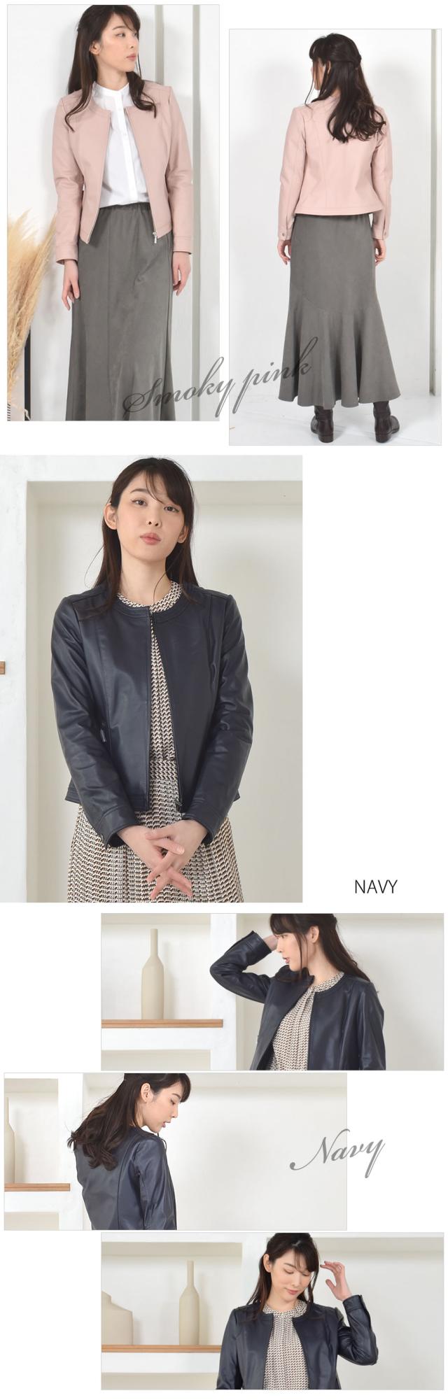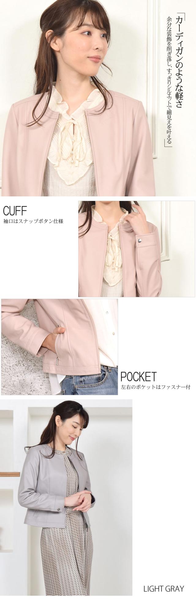 しっとりと滑らかな質感と柔らかさが着込むほどにからだに馴染む、シンプルでスタンダートなデザインです。滑らかな光沢のレザーの質感がレディライクな甘めコーデからカジュアル感やマニッシュまで演出でき、着こなしの幅が広がります。