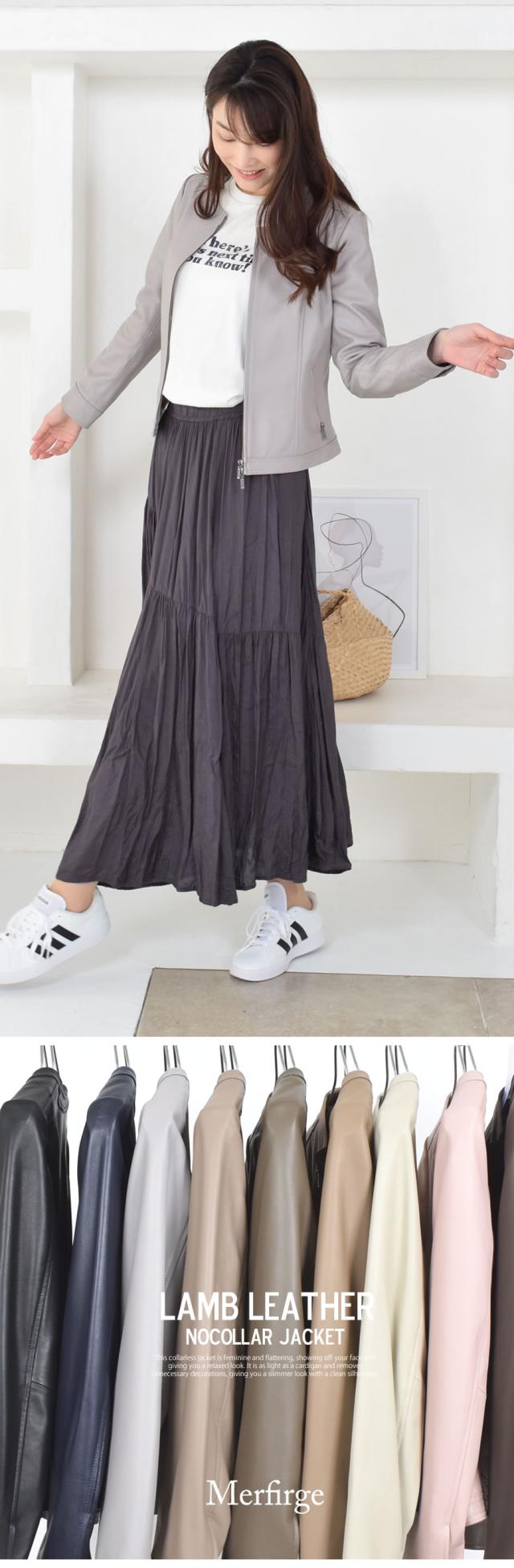レザージャケット[Merfirge] ラム レザー ノーカラージャケット レディス 結婚式 レザー プレゼント 本革 本皮 ライダースジヤケット(kt7003)