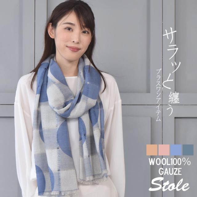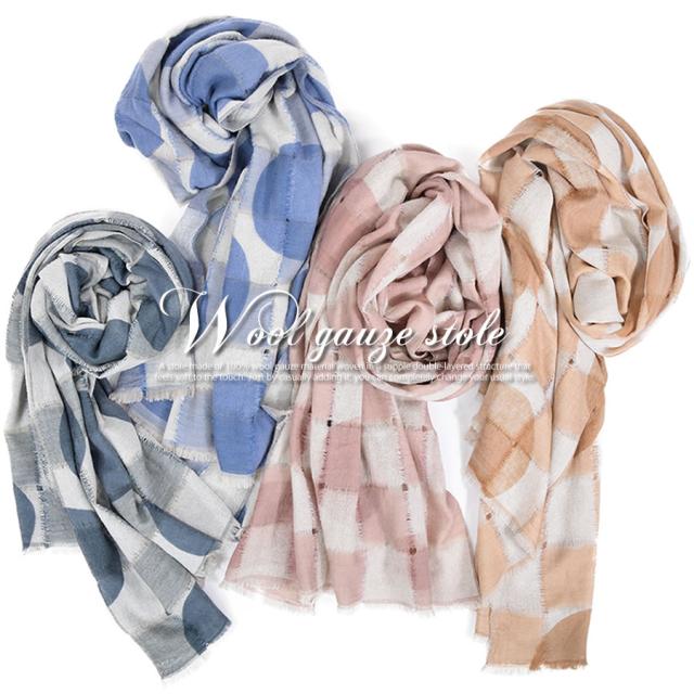 ウール 100% 大判 ガーゼ ストール (WS0027)(メール便送料無料)(P)[Merfirge]