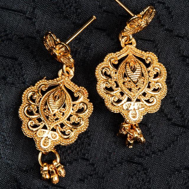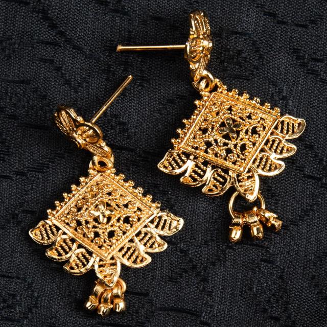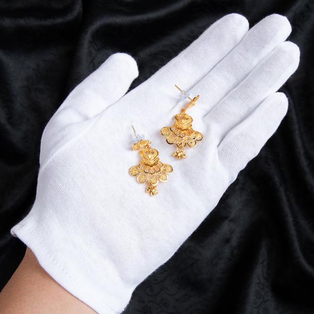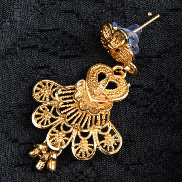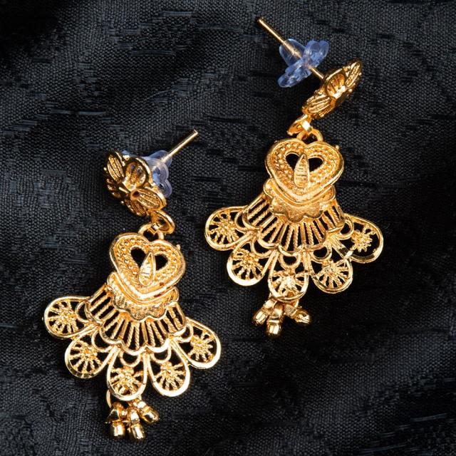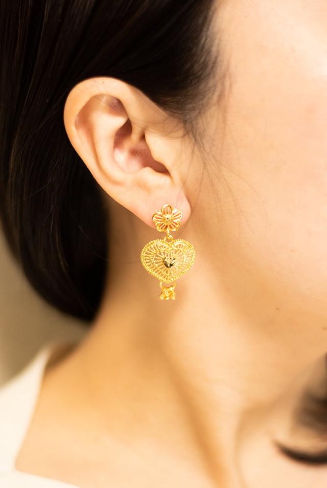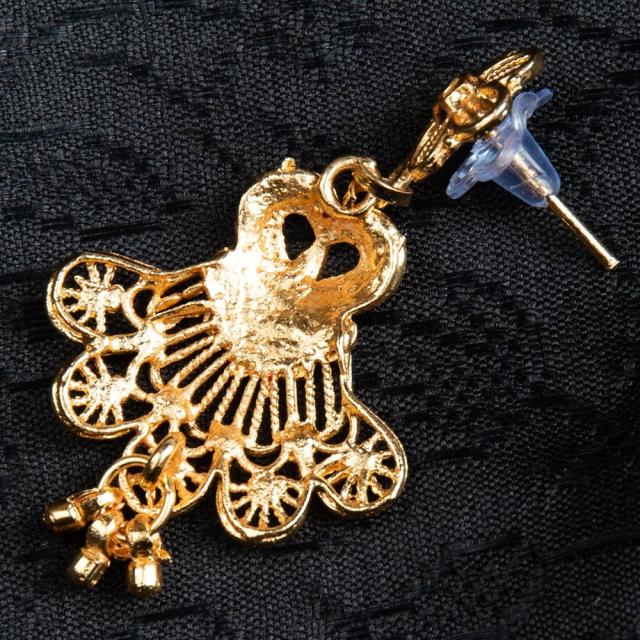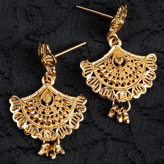 インドからやって来た、フラワーモチーフのきらびやかなゴールドメタルピアスです。 ゴールドメタルのフレームで様々な花や植物のモチーフをかたどったユニークなデザインで耳元を華やかに演出してくれます。程よいボリューム感なので、存在感を発揮しつつも主張しすぎず気兼ねなく普段遣いできるサイズです。 他と被らない個性的なデザインなので、普段着のほどよいアクセントにしてみたり、パーティーやイベントのコーディネートの際にプラスしてみたりと色々なシチュエーションで活躍してくれるピアスです。