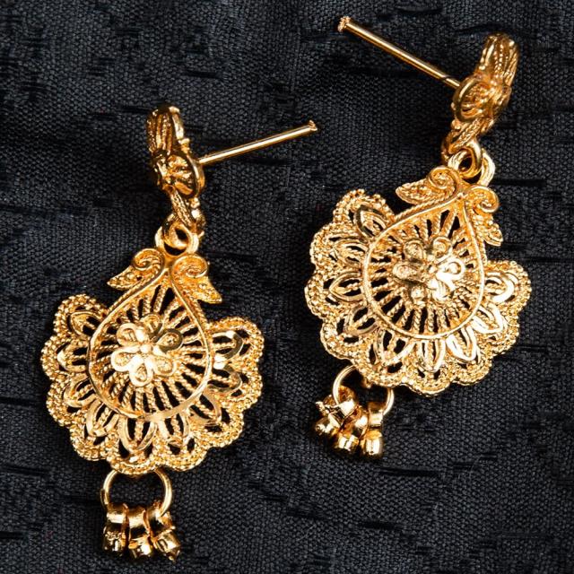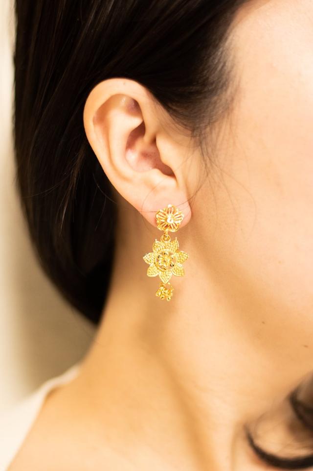 フラワー モチーフのゴールドメタル ピアス / ピアス、イヤリング、チェーン、ゴールド、メタル、ゴージャス、フラワー、ハンドメイド アクセ 【インドとアジアのアクセサリー