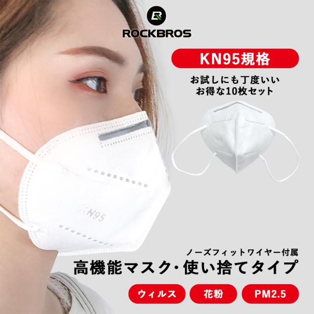 マスク 10枚 使い捨て KN95 男女兼用 ウィルス対策 花粉 飛沫 防塵 ROCKBROS ロックブロス