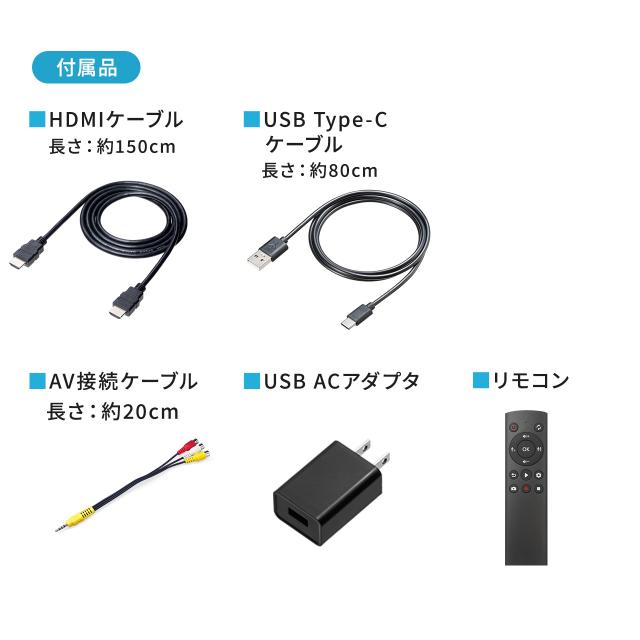 給電用USBケーブル(約90cm)、HDMIケーブル(約150cm)、リモコン