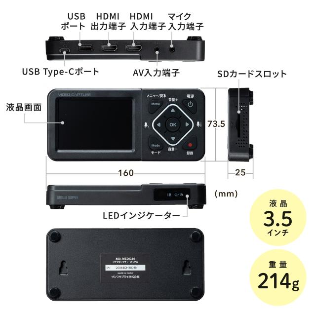 ビデオキャプチャー コンポジット接続 HDMI接続 ビデオテープ デジタル保存 USB/SD保存 [400-MEDI034]