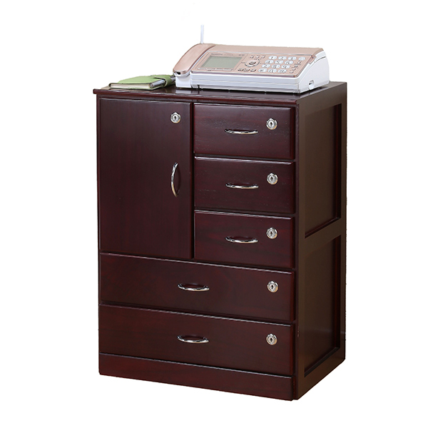 FAX台 多段引出し 桐チェスト 全段鍵付き 幅47cm ( チェスト 飾り棚 5段チェスト 鍵付き リビングチェスト 木製チェスト たんす タンス 木製 木目 収納 ブラウン ダークブラウン カギ付き )