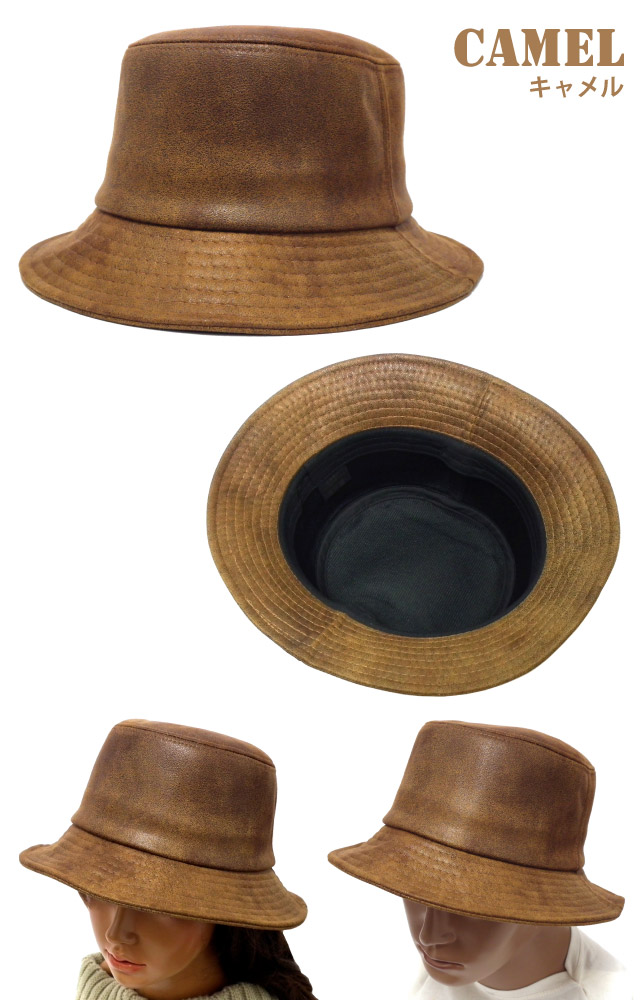 バケットハット フェイクレザー サイズが選べる 60cm 57cm 無地 深め 全3色 hat-1400 メール便は送料無料 たためる 帽子 レディース メンズ 秋冬 UV 紫外線対策 日よけ 深い ストリート おしゃれ シンプル ワイルド アウトドア 野外 フェス