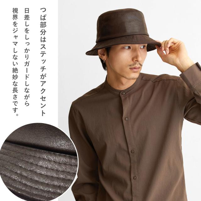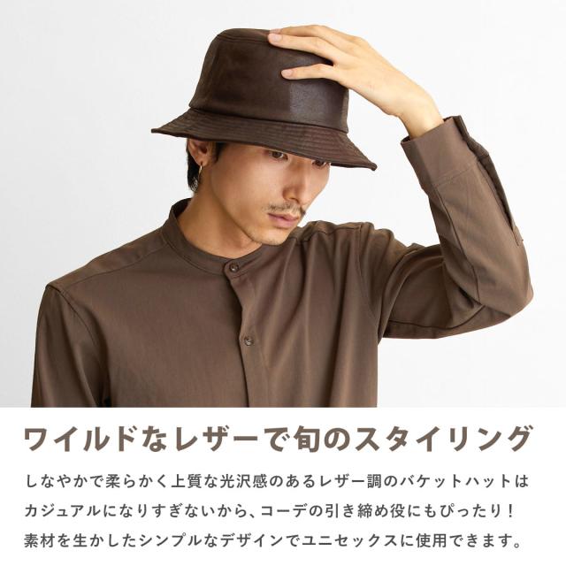 しなやかで柔らかく、上質な光沢感のあるフェイクレザー素材のバケットハットです。